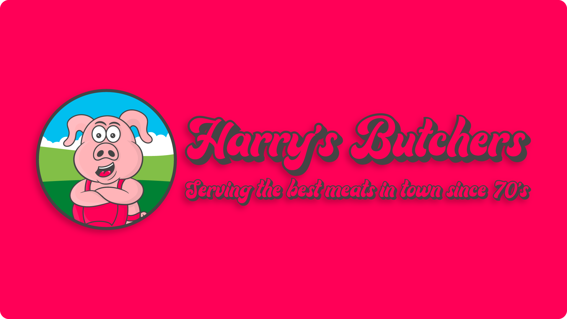 Harry's Butchers approached Pickle Pot Designs for a MASCOT LOGO that’s FRIENDLY, APPROACHABLE, and full of personality. They wanted a playful cartoon pig to represent their premium meats while maintaining a retro charm that nods to their long standing tradition.